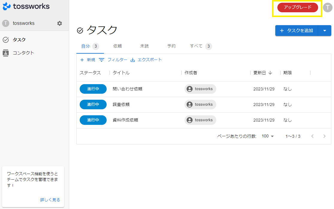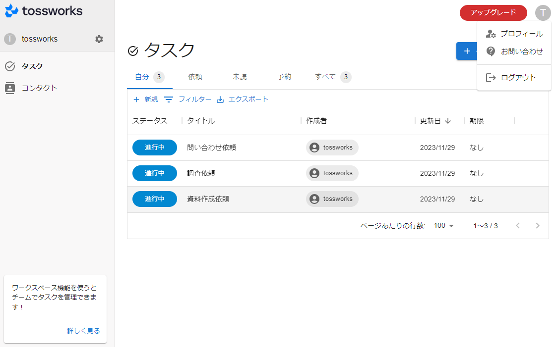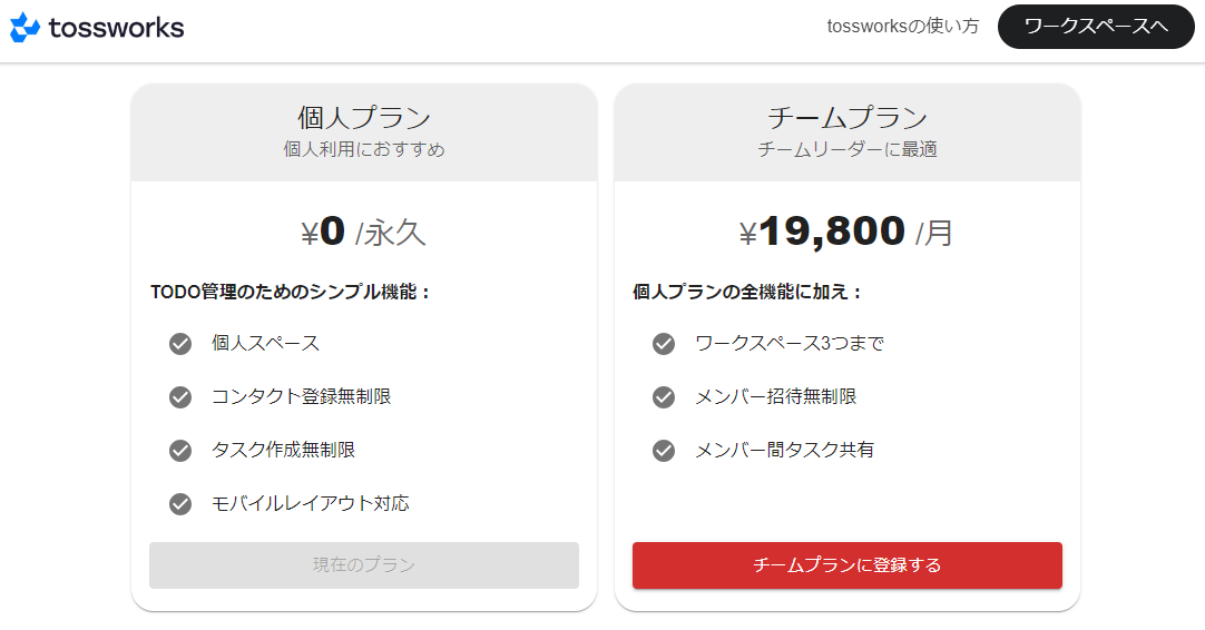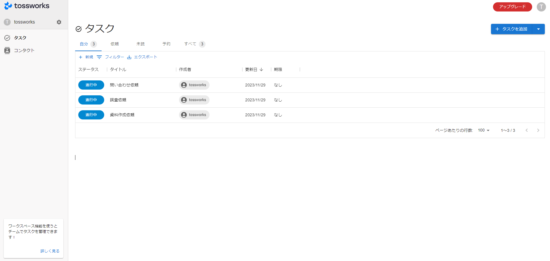 tossworksは小規模なチームで手軽に利用できるタスク管理ツールです。