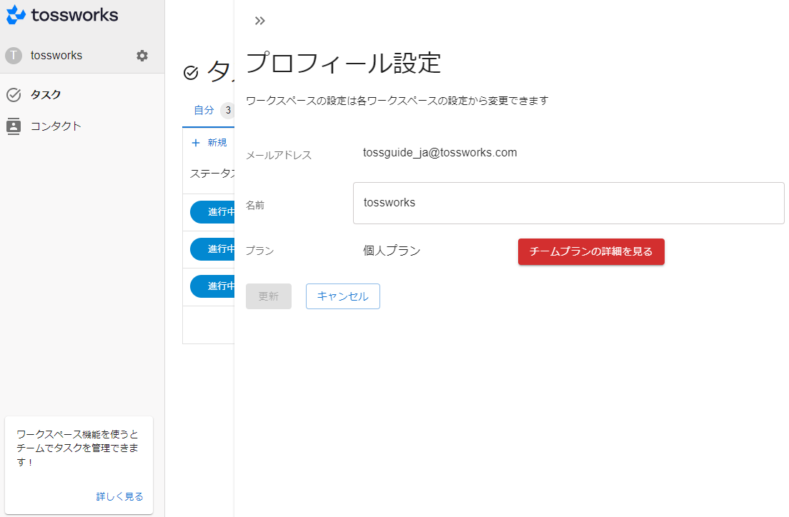 ワークスペースの追加方法は、ワークスペースを管理する(チームプランのみ)をご覧ください。
