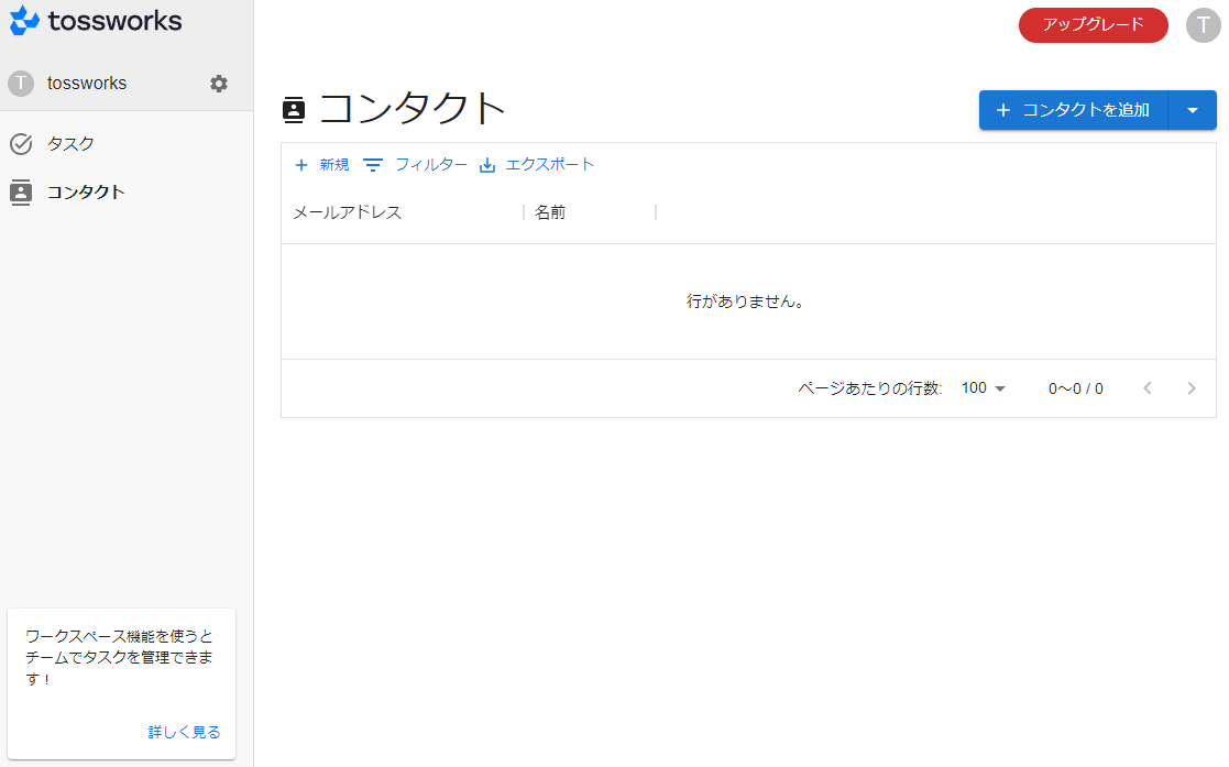 ワークスペースにメンバーを追加すると、そのメンバーはワークスペース内でタスクの作成、コンタクトの追加、他のメンバーの招待が行えるようになります。